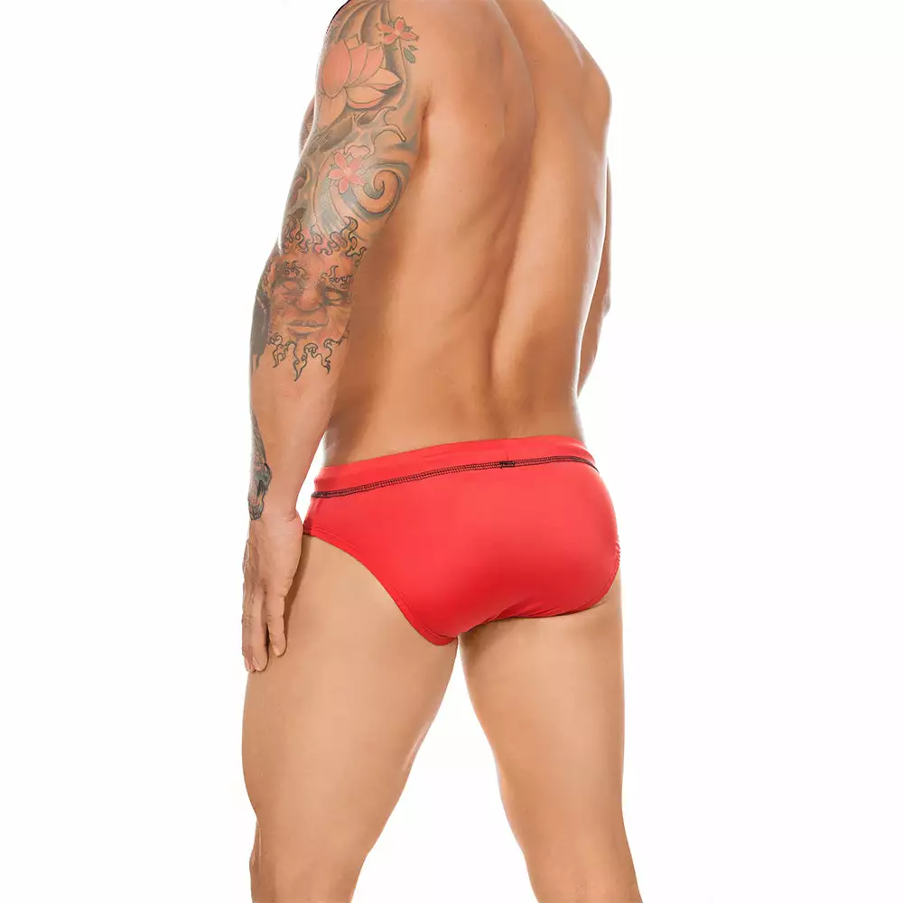 The Cover Male Curious Seductive Swim Trunk is purely seductive and visually appealing. The combination of fashion and function, the style features a vibrant shade with contrast colored dual piping stripes on either sides of the pouch that make you look different in the crowd. Other features include a body hugging fit, a contoured pouch holds and oodles of sex appeal.