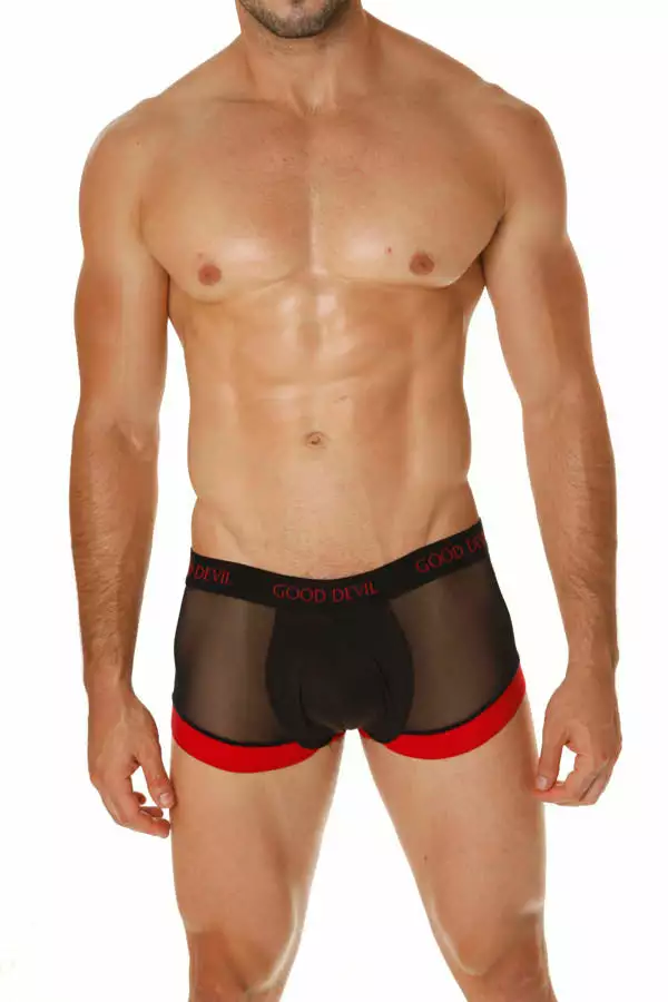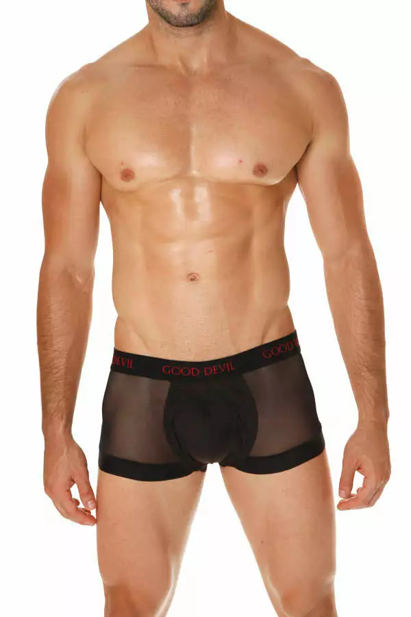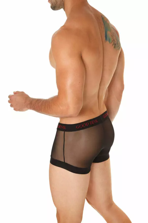 Reconnect with your bad side in this enticing meshed boxer by Good Devil. By making you stay in touch with your erotic side, the Good Devil Rotica Sheer Boxer is what lets you feel sexy about yourself. With the pouch featuring solid fabric panel, it is the rest that is covered with sheer fabric.