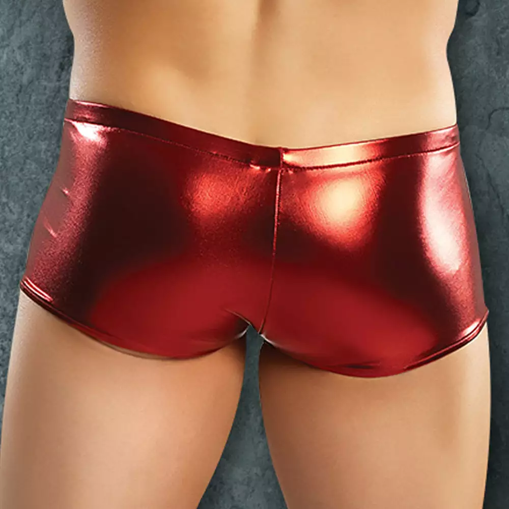 From the Heavy Metal collection by Male Power, this style includes: A metallic mini short featuring a comfort fit pouch and tone on tone elastic trim. Flashy metallic fabric is light, soft and stretchy. 85% Nylon 15% Spandex. Hand wash separately, cold water, line dry. Do not bleach.