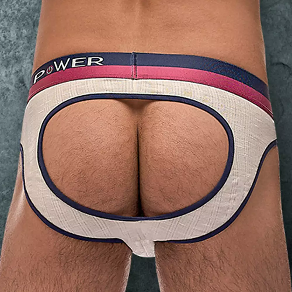 From the French Terry collection by Male Power, this style includes: a moonshine featuring cutout V-shaped windows on the hips, contrast binding, a cutout rear, and a newly branded multi-colored elastic waistband. Extremely soft and absorbent, delicate textured pattern with a smooth finish. Lightweight and breathable with all way stretch. 37% Polyester, 59% Rayon, 4% Spandex