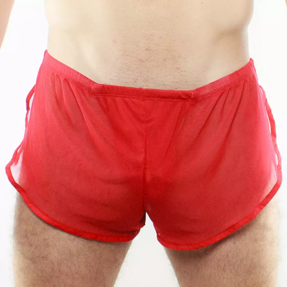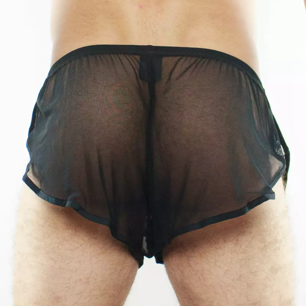 The Mckillop CRME RUN Side Split Shorts is a fab mens underwear. MCK Erotic run shorts are 100% transparent with a built-in pouch. Easy slip-on and off retro cut shows off your assets and gets you ready for action. The comfort is extreme and the support is minimal when you slip into the pair.