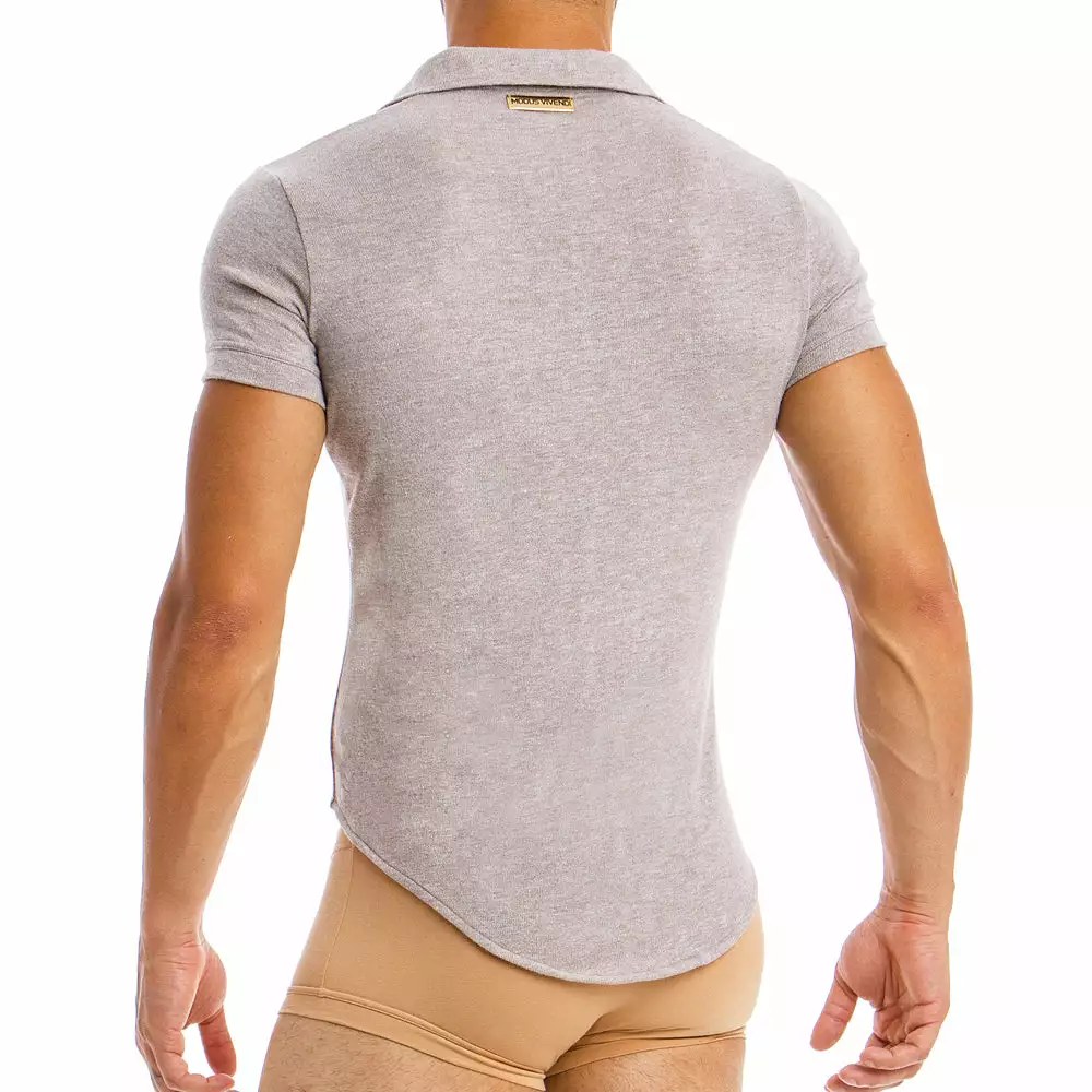 The Modus Vivendi Mohair Shirt is a stylish shirt with buttons in the front, a collar and short sleeves. The fabric is stretchable.